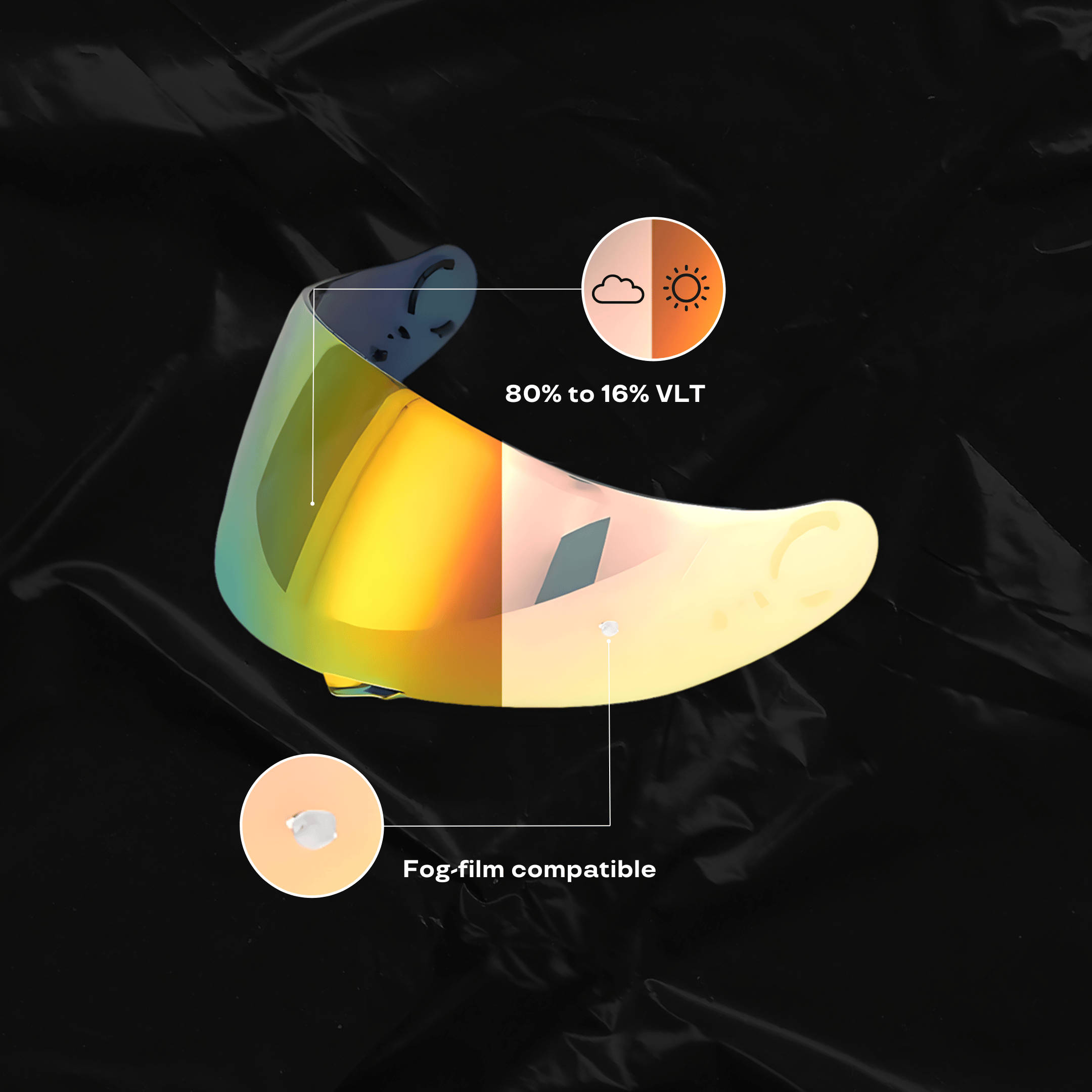 We do not guarantee compatibility with OEM anti-fog films. If you need an anti-fog solution, we offer compatible anti-fog films that are designed to work seamlessly with our visors.