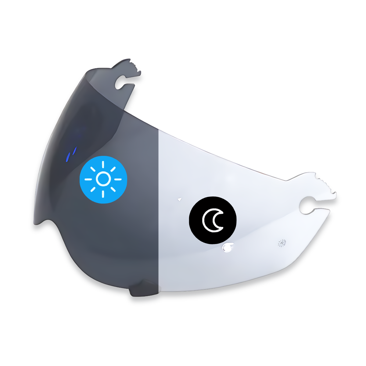 The visors contain special molecules that react to UV light. When exposed to sunlight, they change their molecular structure, causing the visor to darken. In the absence of UV light, the visor returns to its original state.